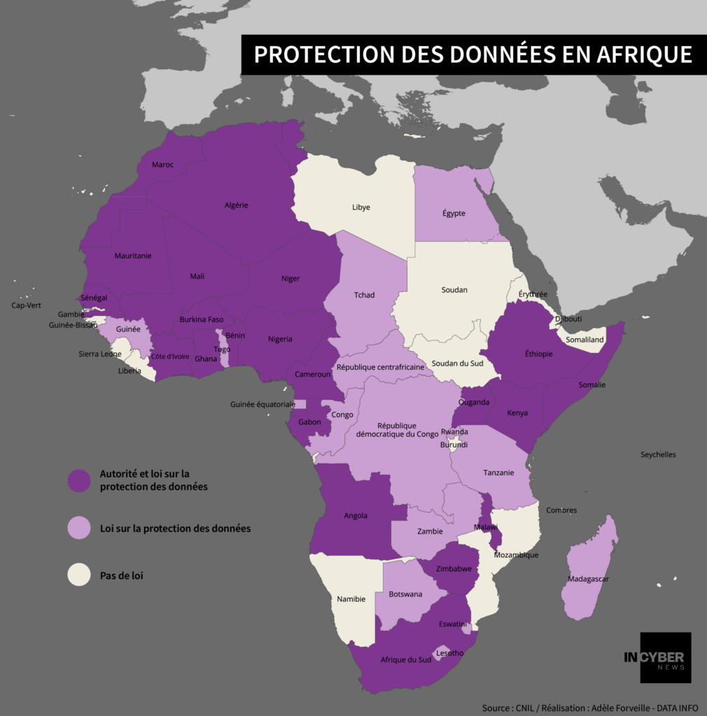 À ce jour, une quarantaine de pays africains ont adopté des lois de protection des données, dont un tiers au cours des cinq dernières années, témoignant d’une prise de conscience accélérée. Ces textes s’inspirent largement du RGPD européen : droits des personnes concernées, obligations de notification des violations, autorités indépendantes de protection des données.